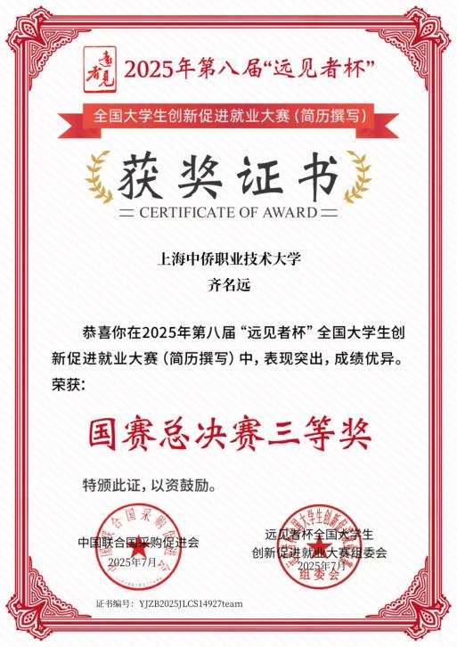 2025年第八届“远见者杯”全国大学生创新促进就业大赛(简历撰写)国赛总决赛