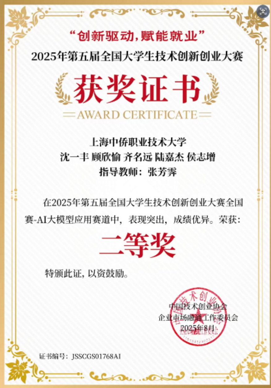 沈一丰、顾欣愉、齐名远、陆嘉杰、侯志增二等奖
